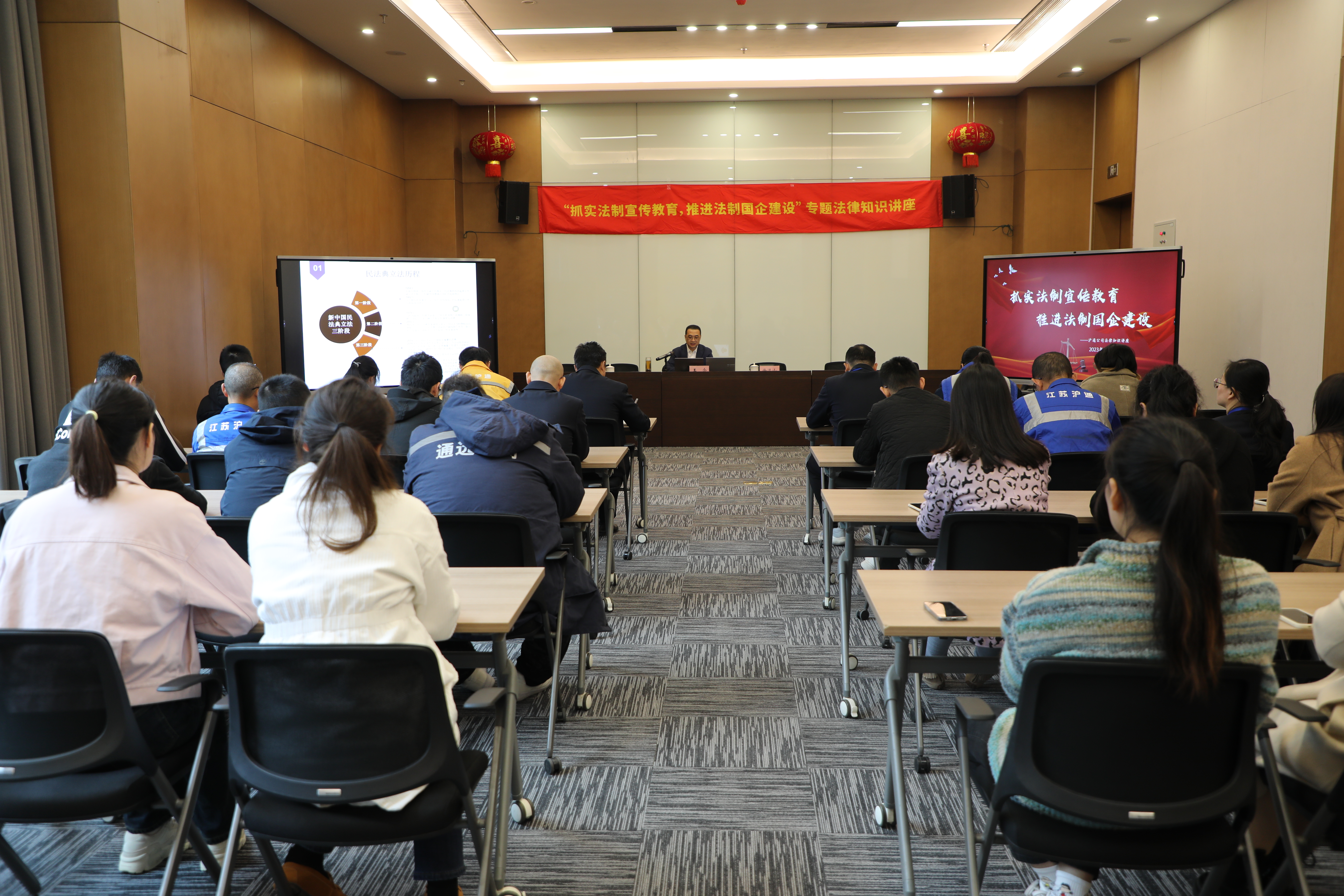 為深入學習貫徹習近平法治思想,推動企業法治文化建設。11月16日上午,滬通公司組織開展“抓實法制宣傳教育,推進法制國企建設”法律知識專題講座活動。公司全體黨員、團員青年、各部門職工代表等近40人參加活動。