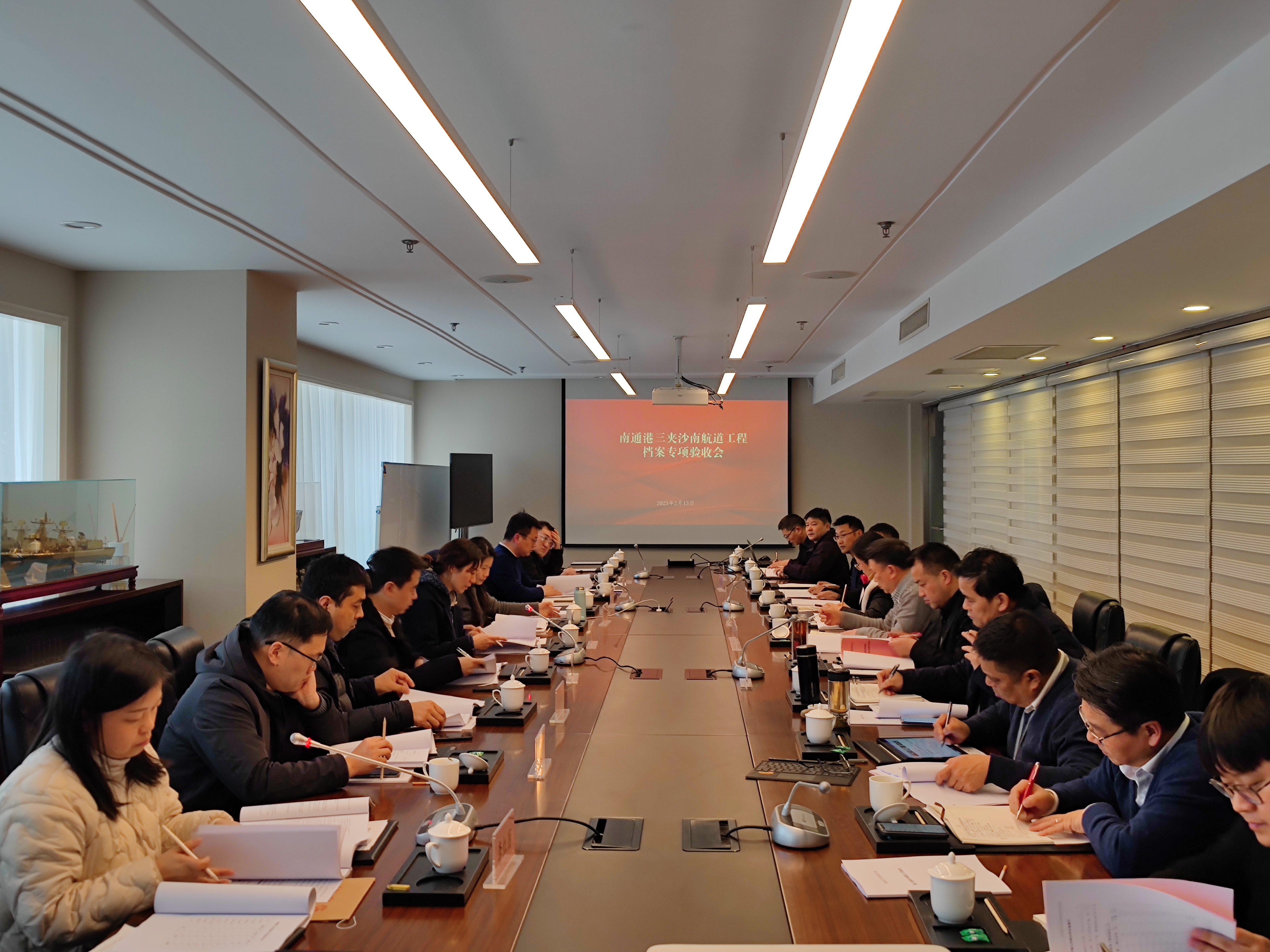 2月13日,南通市交通運輸局會同南通市檔案館組織召開南通港三夾沙南航道工程檔案專項驗收會。集團黨委委員、副總經理朱一林出席會議,南通市交通公共事業發展中心、工程項目建設、設計、施工、監理等單位代表和特邀專家共28人參加會議。
