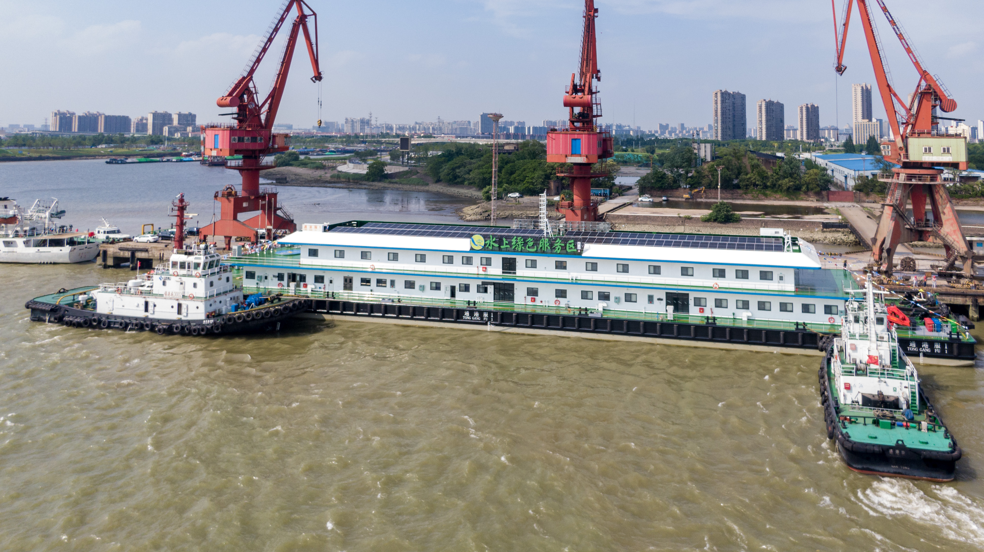 南通港水上綠色綜合服務區110米躉船順利交接