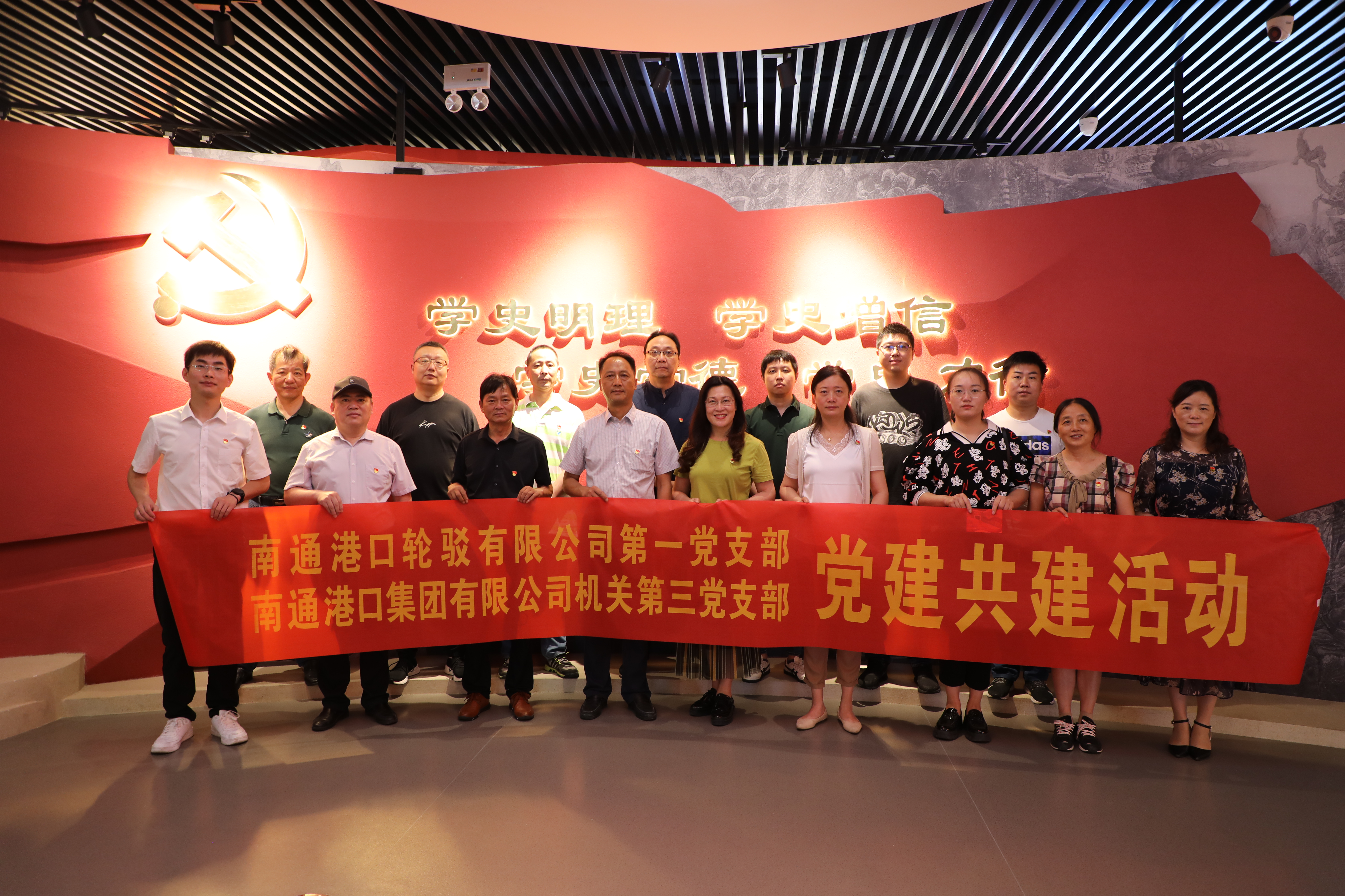 為深化黨史學習教育成果,引導黨員干部在學思踐悟中堅定理想信念、在奮發有為中踐行初心使命,迎接黨的二十大勝利召開,6月24日上午,輪駁公司第一黨支部與集團機關第三黨支部黨員、入黨積極分子赴海安市委黨校參觀“四史”教育館,開展“喜迎二十大 學史踐初心”黨建共建活動。集團機關第三黨支部書記、工會工作部部長杭達成,輪駁公司黨委副書記、紀委書記、工會主席陳春紅參加活動。