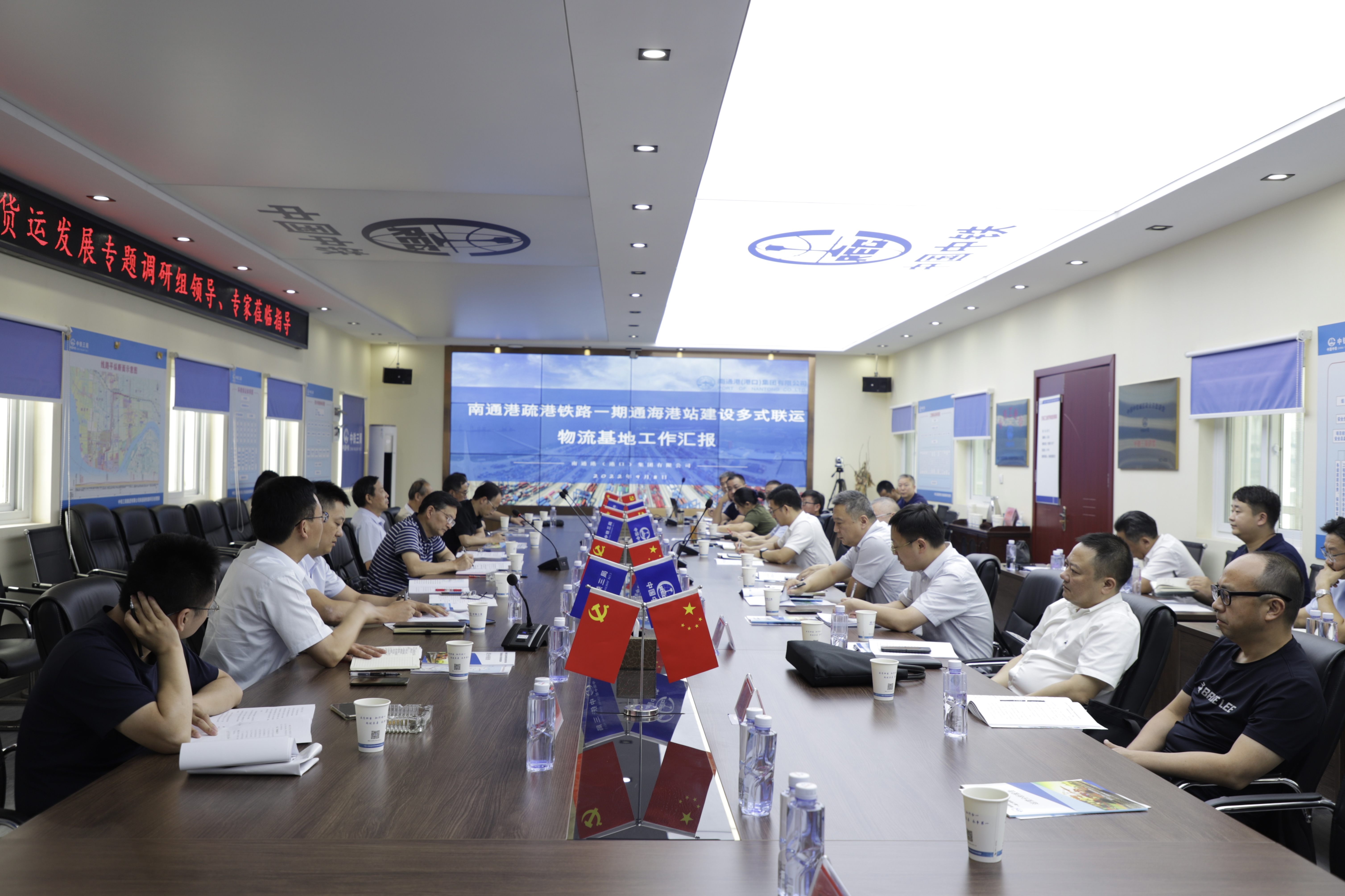 在通海港站建設現場,南通港(港口)集團有限公司副董事長崔劍向省調研組介紹了通海港區二期工程規劃、多式聯運中心物流樞紐體系、疏港鐵路通海港站建設等情況。座談會上,通海鐵路公司黨支部書記、董事長顧焱華向調研組一行匯報了項目建設、投資情況及下階段重點工作計劃;鐵路公司總經理鎮杰作了通海港站多式聯運物流基地運營分析的工作匯報。