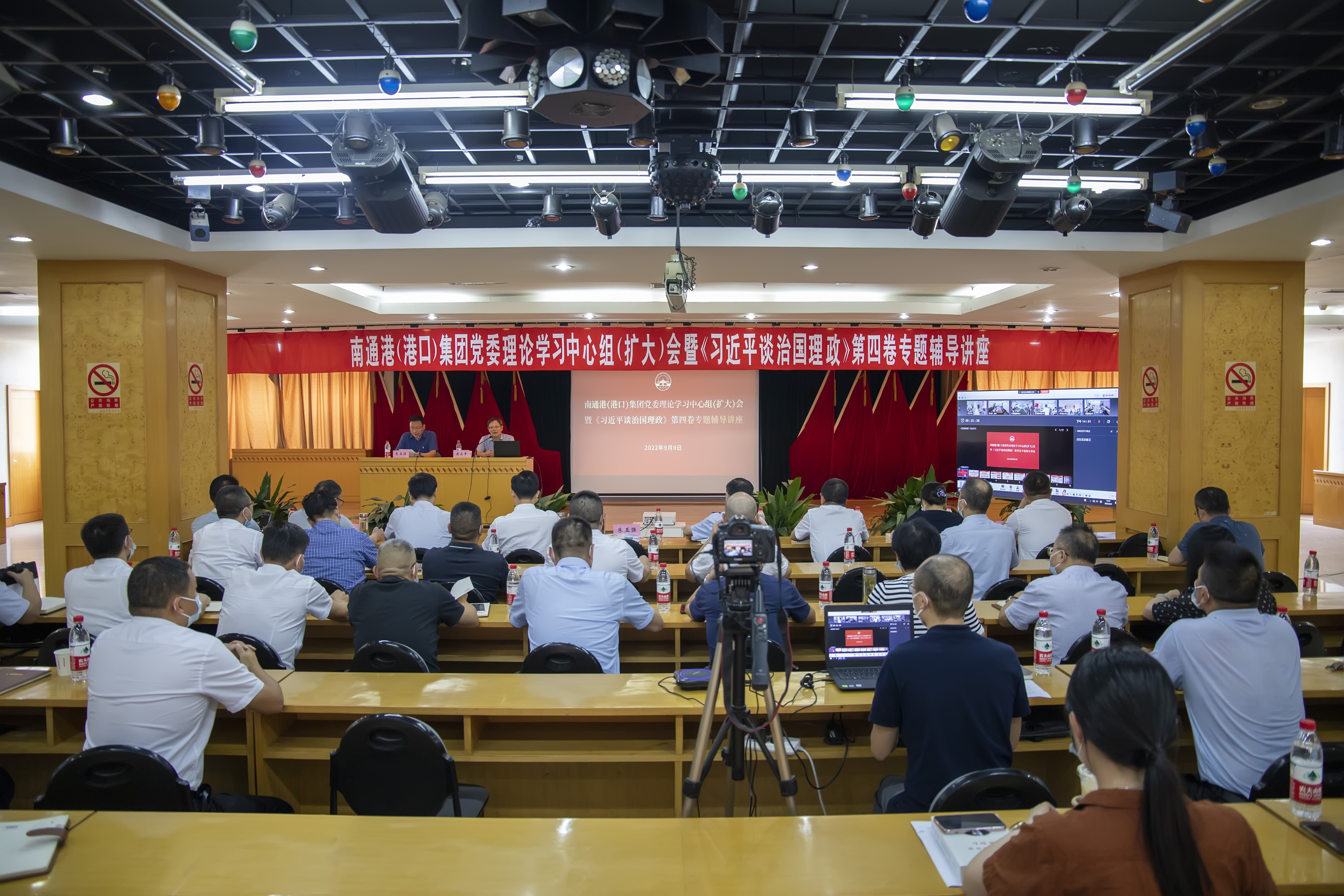 9月9日下午,集團召開黨委理論學習中心組(擴大)會暨《習近平談治國理政》第四卷專題輔導講座,中共南通市委宣傳部二級巡視員、理論研究、文化研究專家,黨的十八大、十九大及歷次中央全會中共南通市委宣講團主要成員黃正平就學好用好《習近平談治國理政》第四卷作專題輔導。集團班子成員、機關職能部門副職以上人員、各單位班子成員及黨群科長、支部書記代表、集團中層后備干部代表參加會議,會議由集團黨委書記、董事長朱玉強主持。