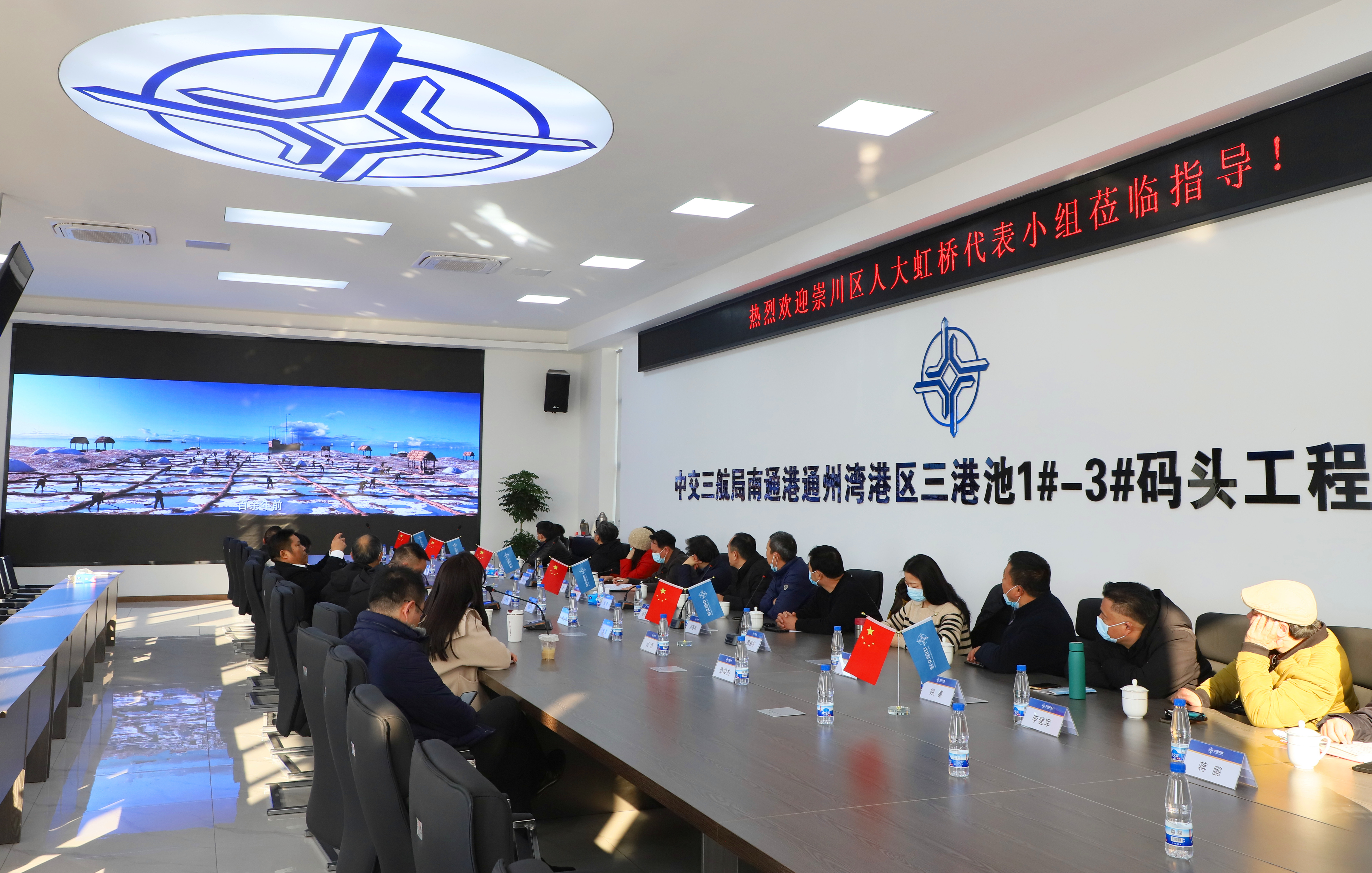 調研組實地察看了南通港通州灣港區三港池1-3碼頭工程現場,聽取了項目實施情況和工作推進情況。全體組員在項目部會議室觀看了通州灣示范區宣傳片和南通港通州灣港區三港池1#-3#碼頭工程介紹短片。